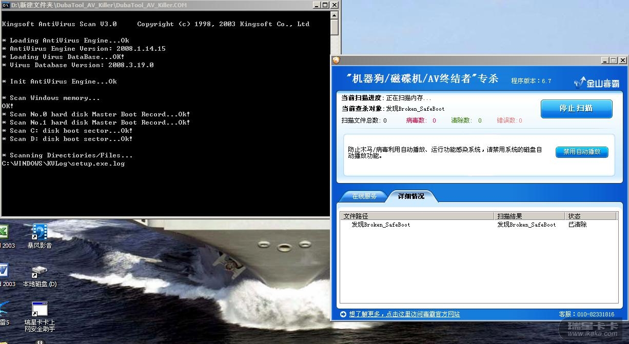 这里官网下载瑞星听诊器:放桌面,改名运行,扫出来的日志也自动生成在桌面上,压缩发这论坛来。