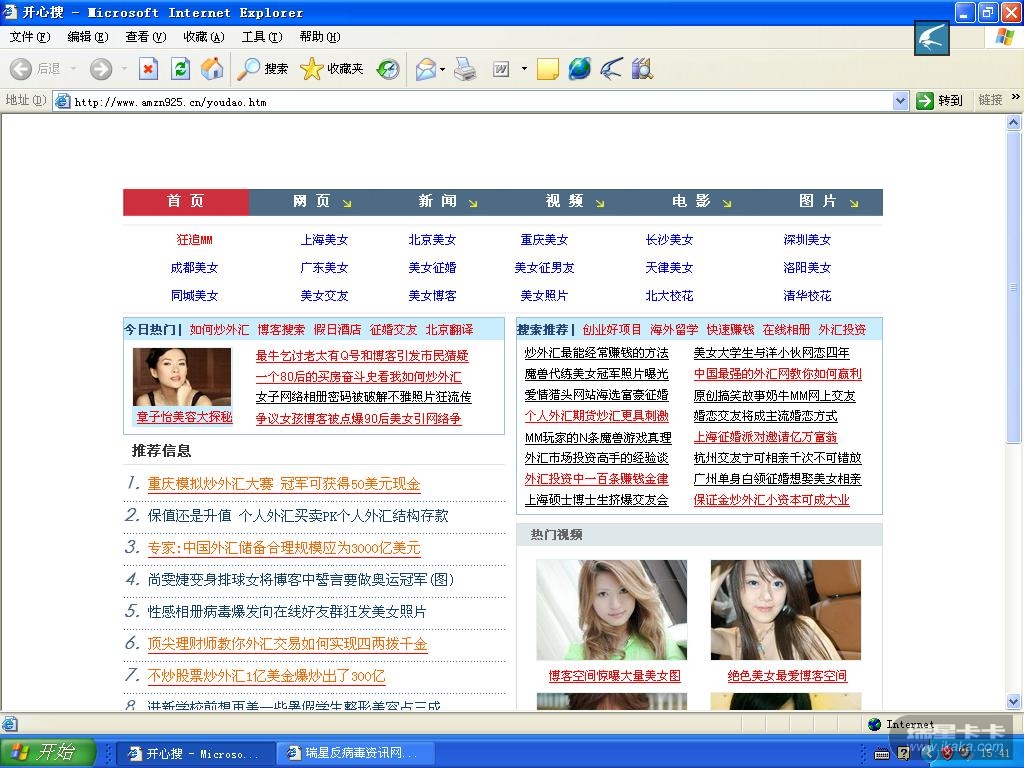 今天上午上网的时候主页被篡改了,以前主页是MSN中国,现在变成了"开心搜"(