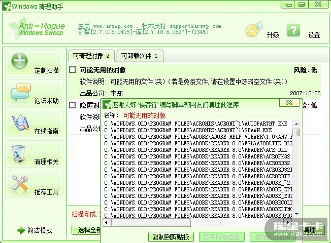瑞星卡卡安全论坛技术交流区反病毒/反流氓软件论坛 之前中了Adware.win32.fsutk.a,然后重装,想确认下病毒是否还在,有日志。。。