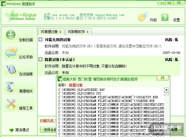 再附上日志下。。。现在只是想确认下病毒是否删尽了,请各位帮忙。。。