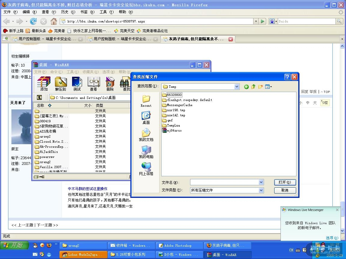 C:\Documents and Settings\lu\Local Settings\Temp文件夹里的东西,能删除的都删删吧