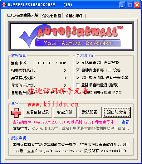 回复:防御AutoRun病毒--AutoRun病毒防火墙 V5.31绿色