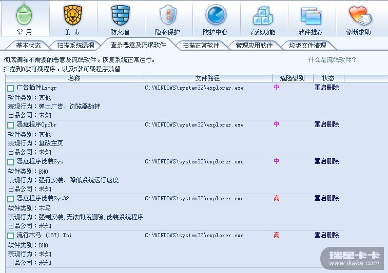 我在用卡卡“查杀恶意及流氓软件时”,查出如下软件: