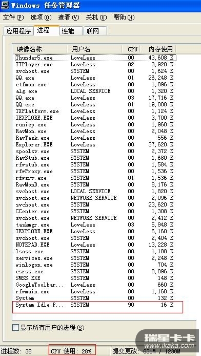 system idle process空余的CPU是90%