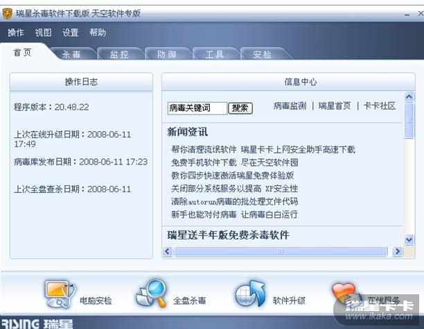 以下为我在08.06.12零晨的截图和现在(22:10)刚做病毒日志扫描.