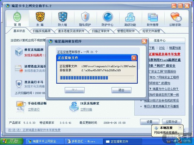 回复:请问版主或各位大侠,修复安全漏洞出现如下窗口是什么原因啊