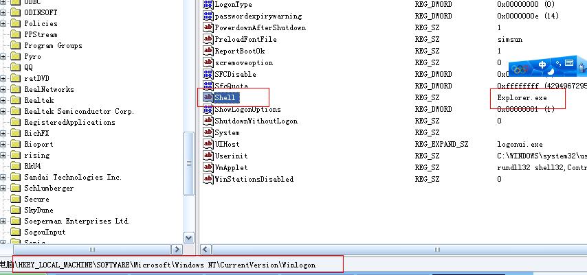 補充:我的解決方法是在HKEY_LOCAL_MACHINE\Software\Microsoft\Windows NT\CurrentVersion\Winlogon註冊表項,把Userinit的值修改成C:\WINDOWS\system32\userinit.exe,explorer.exe.