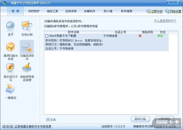 瑞星全功能安全软件2009公测