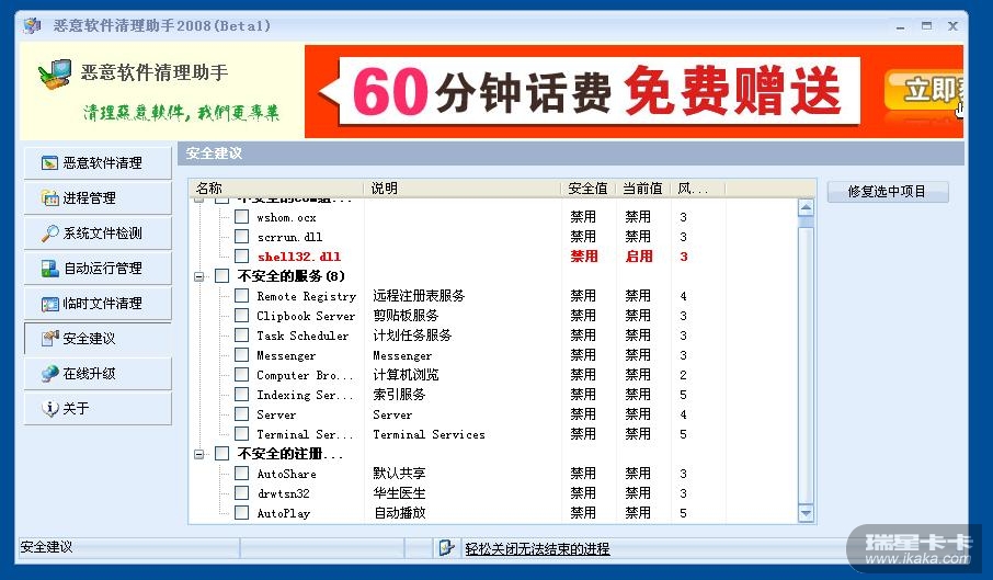 啊啊 我家电脑杀毒老是提醒说【漏洞侵入】,我用瑞星一查,找到了5个不安全漏洞。本人已经摆平了4个只剩这一个共享漏洞了。