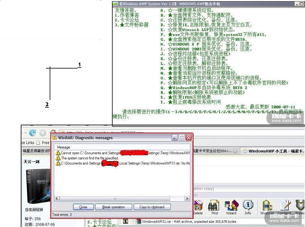 处理完以后,用卡卡助手清理插件,修复IE~~