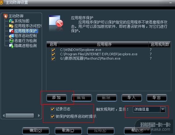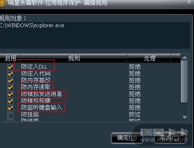 图四:以Explorer为例,对qq堂的主程序启用画红框的项目,选为拒绝,并确定
