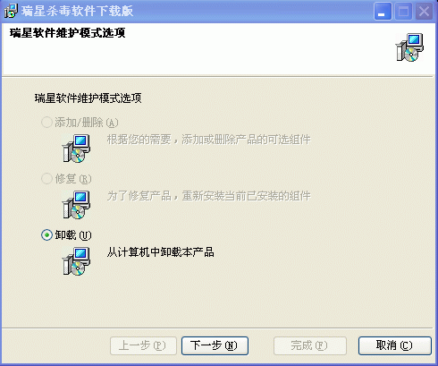 清除完后重启电脑 再试着卸载瑞星 然后删除安装目录 重装