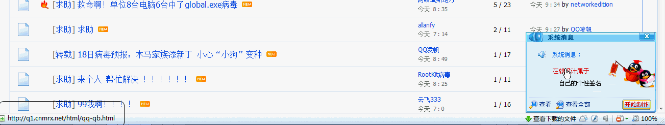 全新安装的系统后,一上网,在任何一个网页上都会多了一个如下图片所示的图片,有时下载软件时,还会自己先跑出来另外一个带有病毒的程序,被杀毒直接杀了,我用的杀毒软件是NOD32,病毒库已经升级为最新,全盘杀过后没有病毒,