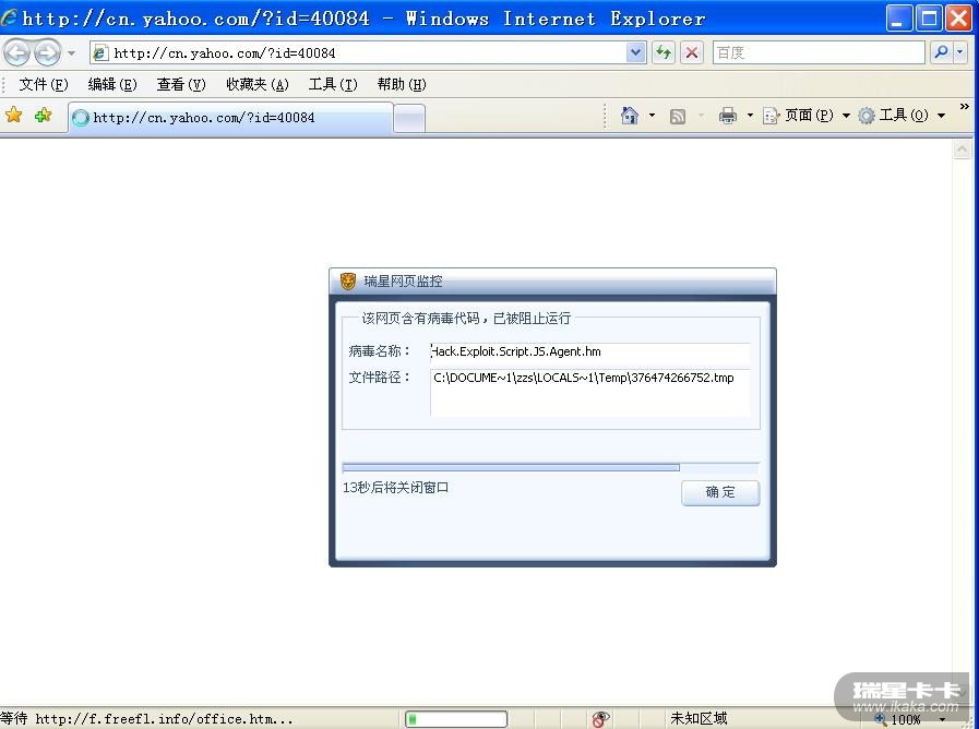 打开所有的网页,瑞星网页监控都提示网页含有病毒代码,包括瑞星官方网页,我贴几张图