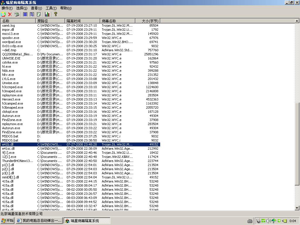 你好,按你的方法我查了,真的在瑞星的隔离系统中看到这个文件名.