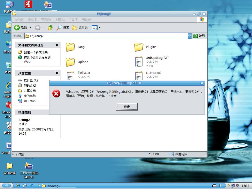3、打开SREngLdr.EXE后有可能出现入口点错误的提醒,有可能是杀毒软件的正常修改,先不要自行修复,该信息会出现在扫描日志中