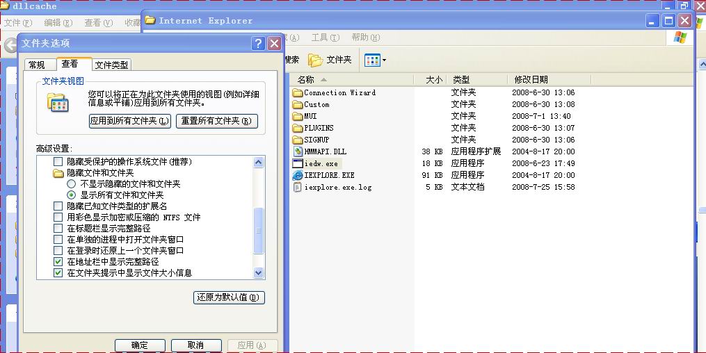 刚才的的Backdoor:Win32/Hupigon.gen!B好像已经解决,我在 反病毒区 也上传了,fillix 提供了与aaccbbdd相似的方法,但是多一条  “开始--运行--输入dllcache,从这个文件夹中找到 iexplorer.exe,复制到C:\Program Files\Internet Explorer下面替换你那个IexplOrE.ExE ”  这个可疑文件已存在很久,用 瑞星听诊器 多次搜到,但是根本找不到这个文件!但是处理完Backdoor:Win32/Hupigon.gen!B后就搜不到了!!!