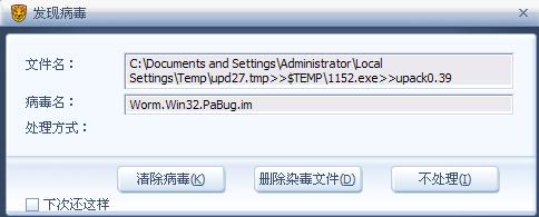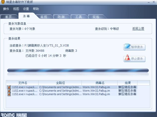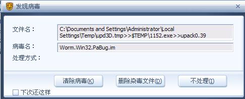 机器重起。用瑞星查杀依然存在。杀不掉。