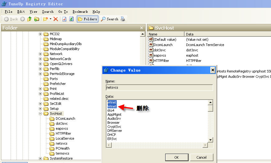 1、用IceSword强制删除%system%目录下的winnet.dll和winnet.dll.uns。