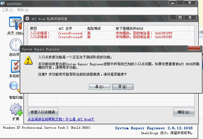 进入修复的 界面 我点是呢还是点否呢