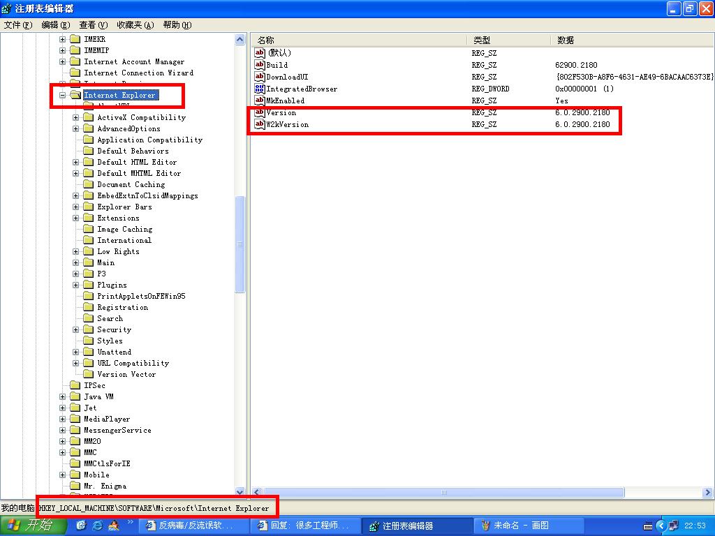 当然,因病毒导致IE版本注册表项被修改也有可能。
