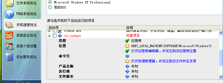 [求助] 我在优化大师里发现了这样个红色的起动项