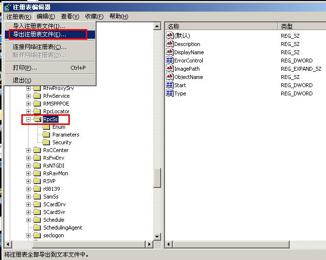 然后你就可以将其注册表文件,以及那个rpcss.dll文件一起复制到有问题的系统里