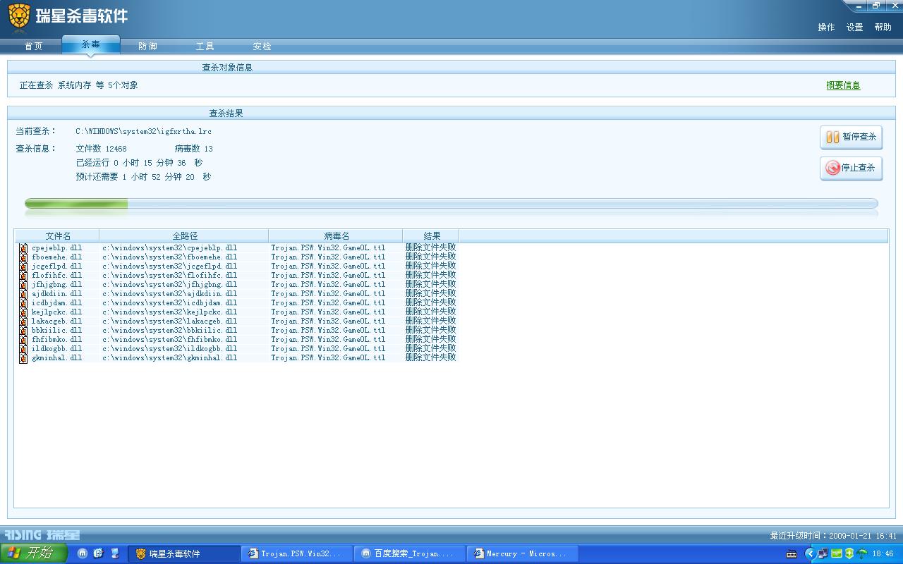 重新启动电脑,再次查杀,似乎已经杀掉了。