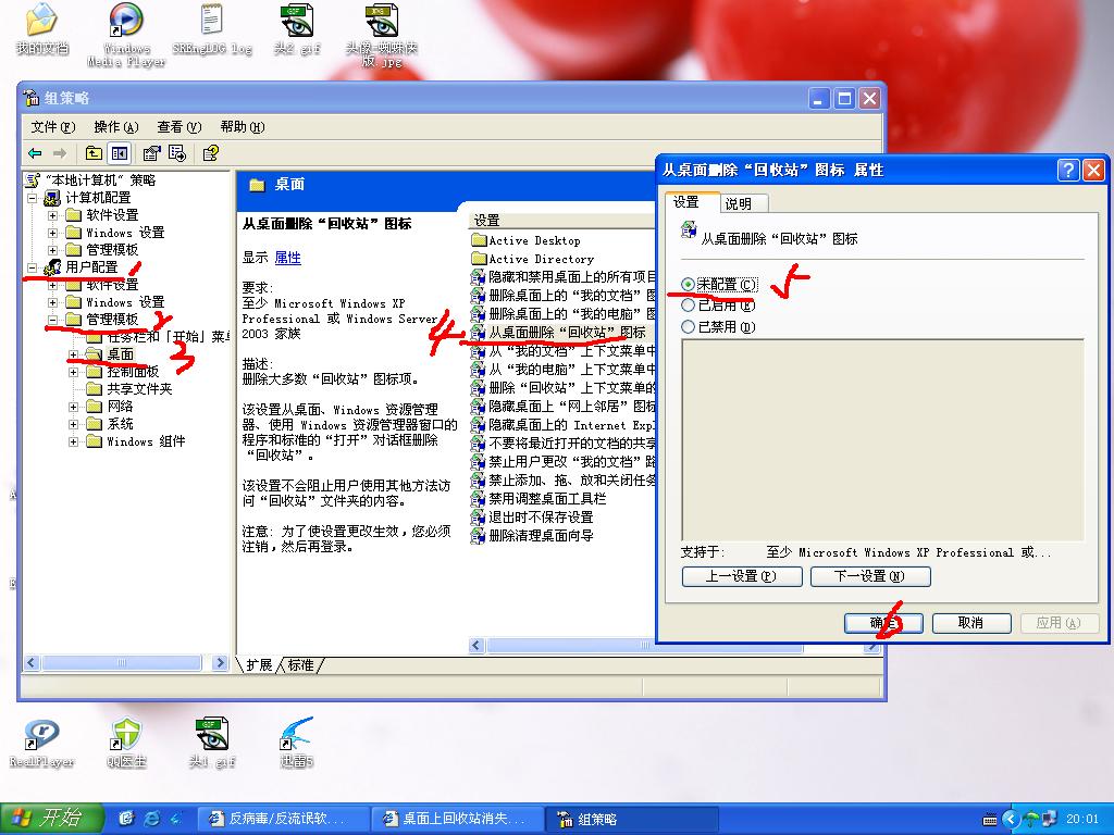 用自定义桌面修改,可回收站下方没有挑钩的地方,怀疑注册表被篡改,这是扫描报告