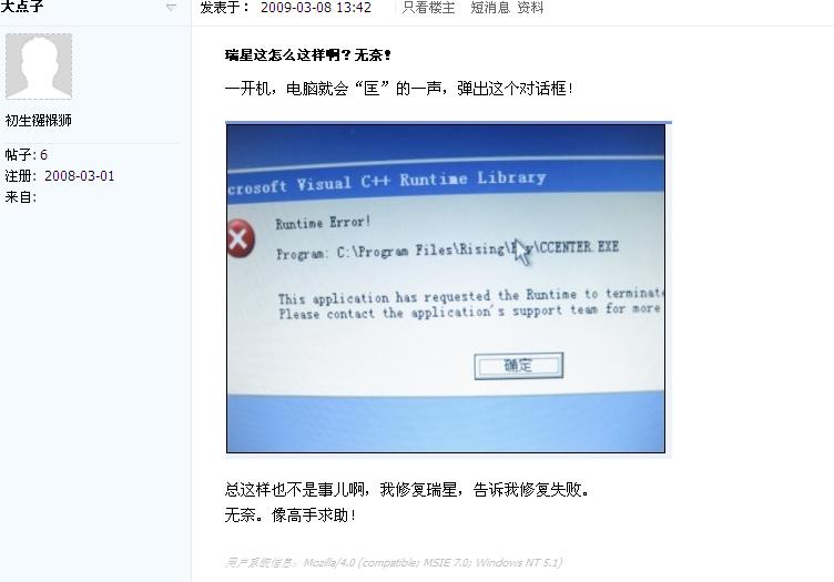 总这样也不是事儿啊,我修复瑞星,告诉我修复失败。