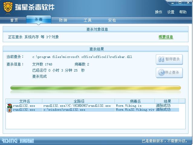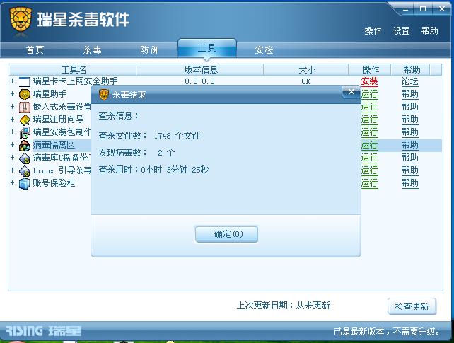 宽带连接瑞星升级,开始杀毒,也只有两个。瑞星谎报!!!