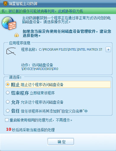 lz如果当前没有使用任何的磁盘设备管理软件,就直接拒绝,如果在使用磁盘设备管理软件就放过即可。