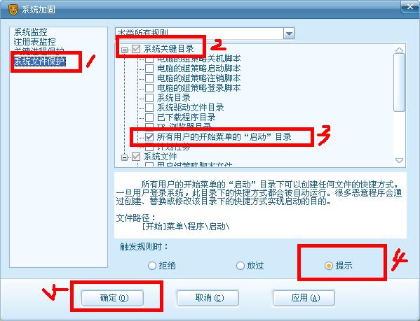 可在删除C:\Documents and Settings\Administrator\「开始」菜单\程序\启动\QQ腾讯.exe 这个病毒文件前,完成瑞星主动防御监控相关设置,然后删除文件,再看看瑞星提示是什么进程又创建了该文件。