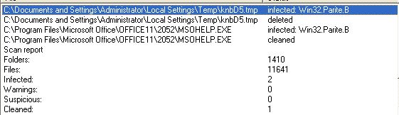 。。。 都扫描过了 没出现上面那图的东西了  我看懂了 是不是那个文件有病毒 下面是DELETE 删除了的意思啊?