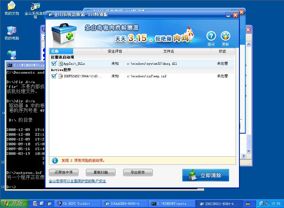 [已解决] 【测试】金山系统急救箱对付2种病毒的效果