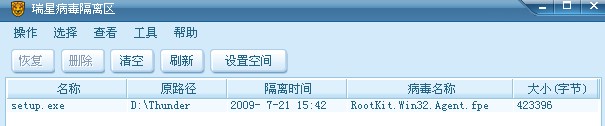 我找不到那个文件,刚才用瑞星扫描迅雷安装目录。扫出了3个病毒杀了,我在全盘扫描一下吧。