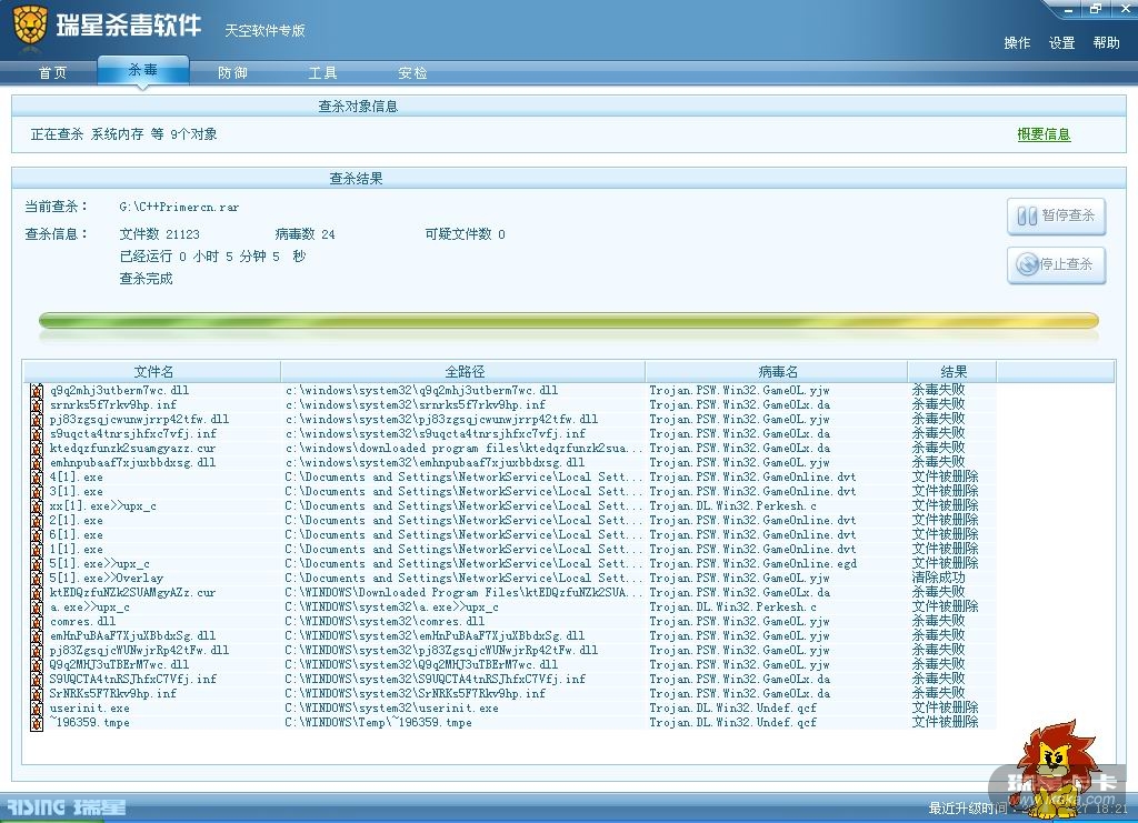 回复: 电脑中了a.exe病毒,瑞星杀不掉,我把扫描日志贴下面