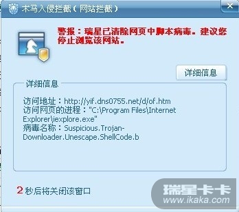 访问的网页被挂马,瑞星已经拦截了攻击。