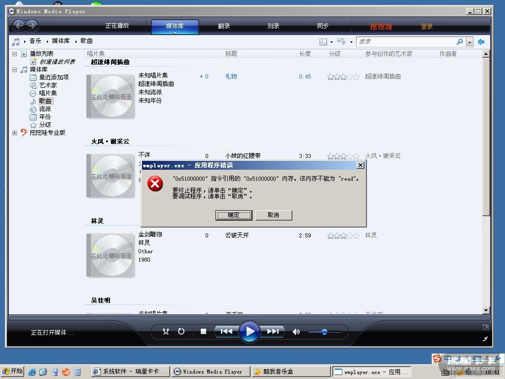另外别的播放器能正常播放文件,除了酷我音乐盒能播放部分文件外,也会出现错误提示