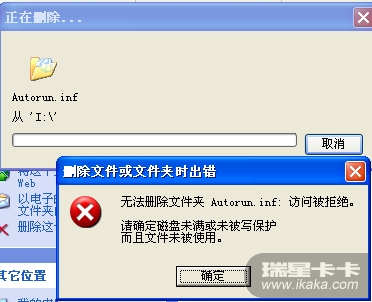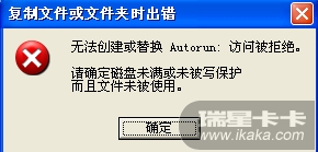 我在桌面上新建了一个空的Autorun.inf文件夹,本想把那个文件给替换掉,结果提示图二所示现象: