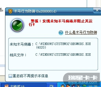 回复:Regmods.exe程序。瑞星提示是未知木马病毒。