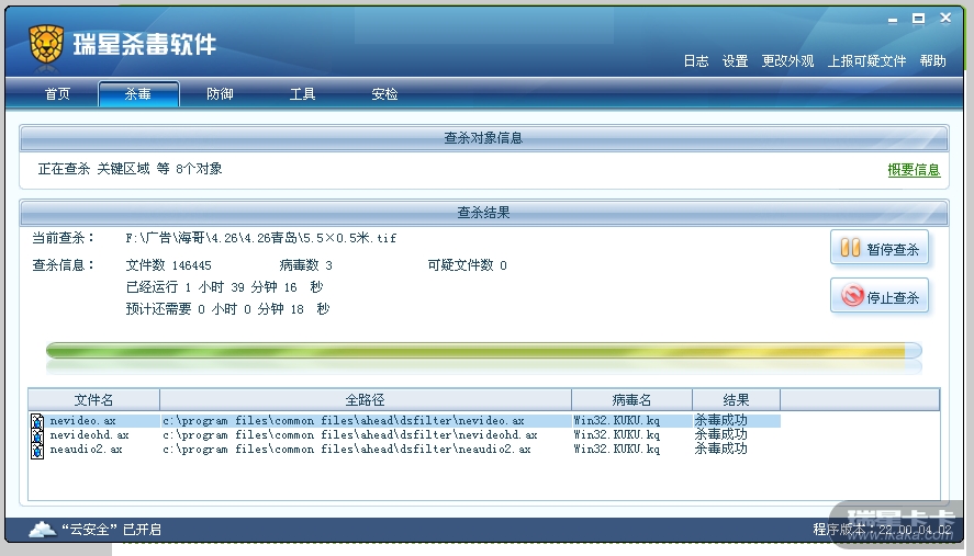 用瑞星清除成功,下次扫描又有。