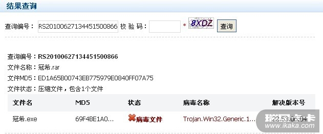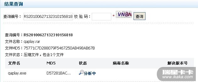 我从不用卡卡清除只用卡卡打漏洞.我说的是瑞星可杀否???上报这么久了.还在在分析