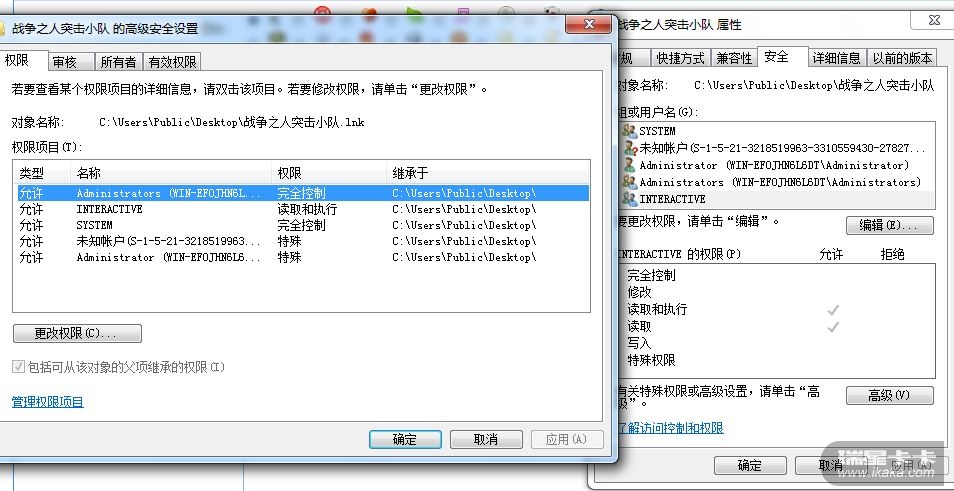 双击那个未知账户看下它的特殊权限有哪些,截图上来