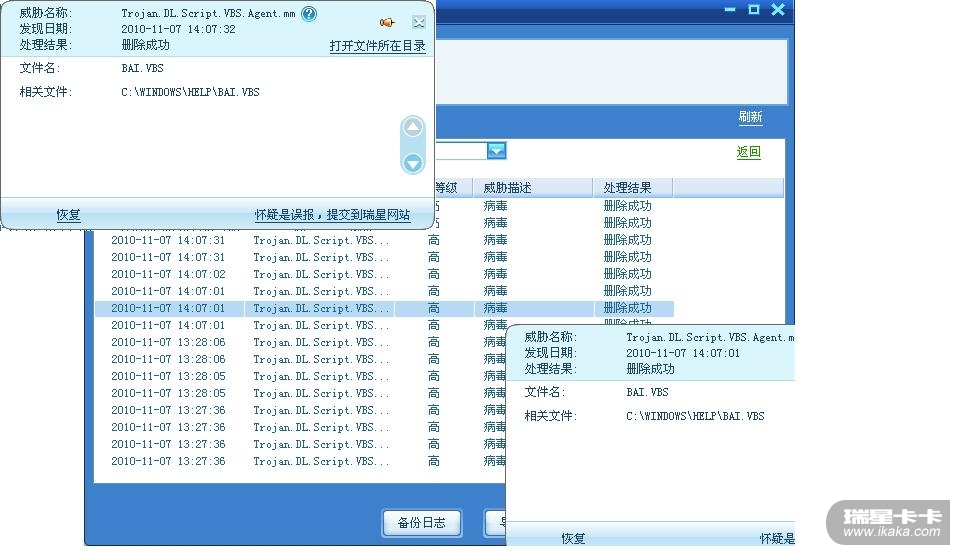 文件监控老是在同一个文件夹里提示发现病毒并删除成功,我把该文件夹用瑞星杀了,没病毒啊?不一会就蹦出来了.