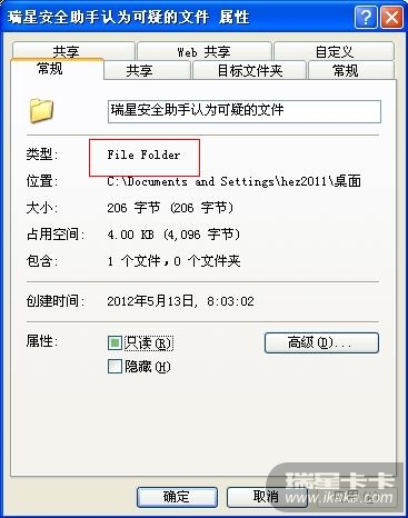 不知道怎么回事,文件夹属性中部分文件类型变英文了!