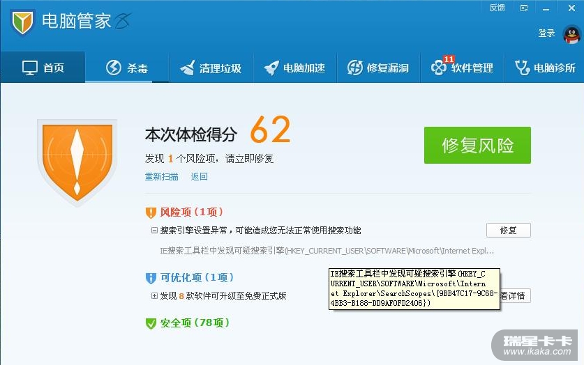 瑞星软件显示我的电脑正常!!刚刚连瑞星软件都打不开