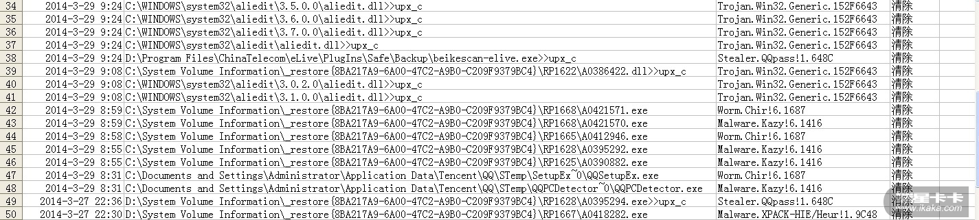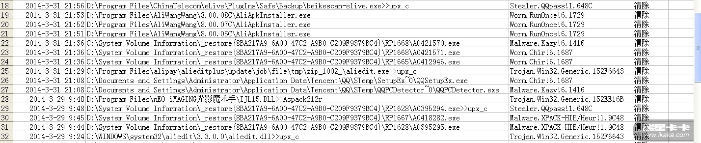 最近2天中了更多毒了,还中了 Malware.Kazy!.1416      Stealer.QQpass!1.648C