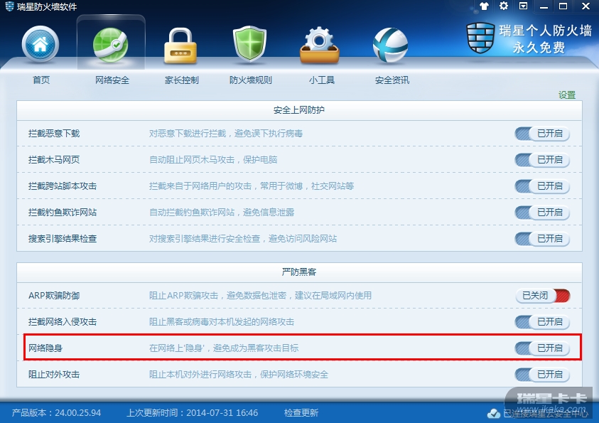 瑞星防火墙阻止远程扫描后,网络就断了,这时候关闭网络连接的话,机器就变的奇卡无比
