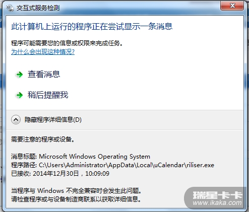 在电脑中,services.msc 打开服务,然后找到Interactive Services Detection,点击禁用后确定,还是关不了。